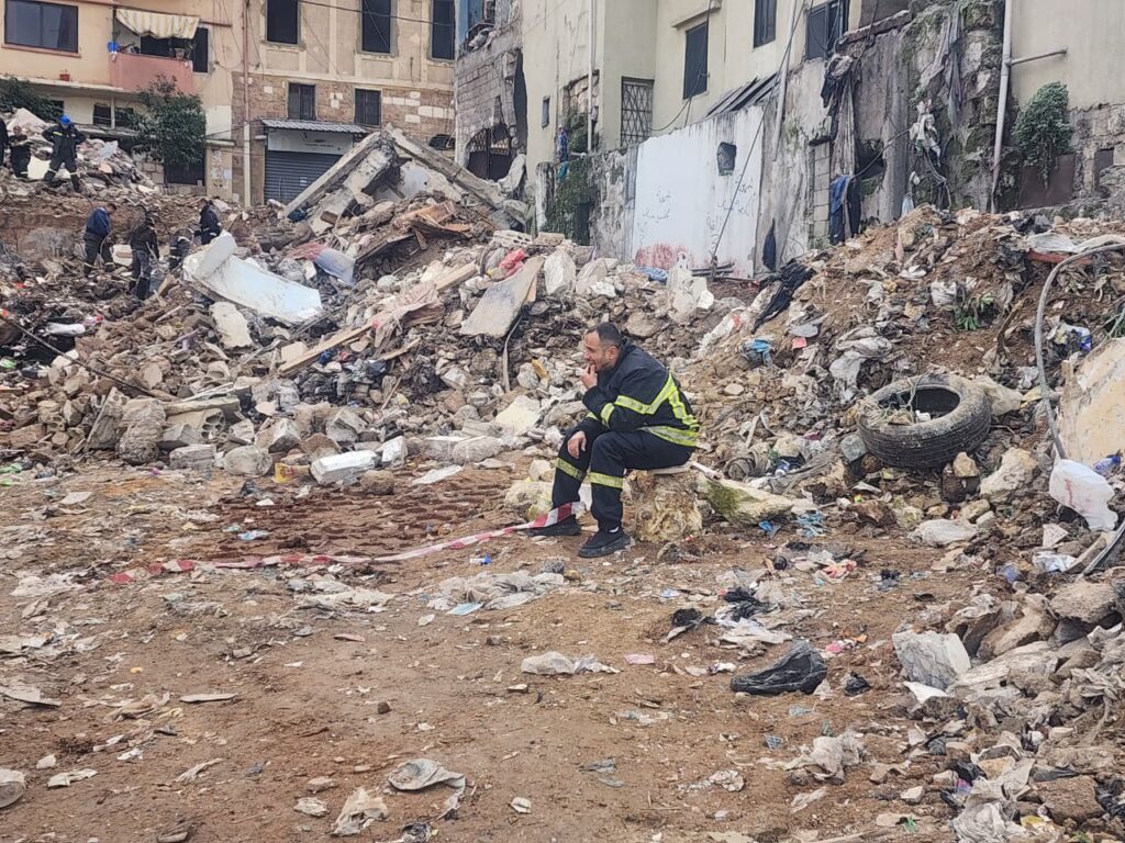 عند الساعة الرابعة من عصر الأحد 8 شباط 2026، تحوّل مبنى “صيداوي” في حي المهاجرين شارع سوريا الواقع بين جبل محسن والتبانة في طرابلس، والمؤلّف من 12 شقة إلى كومة من الركام، وهرع المئات من أبناء التبانة للمساعدة في إزالة الردم والبدء برفع الأنقاض، ريثما تصل فرق الإسعاف والدفاع المدني. في تلك الأمسية، كان المشهد مريعًا على الأرض، قبل أن تنزل الدولة بكافّة مؤسساتها الأمنية إلى الأرض، فيما افترش الناس الأرصفة. في الشارع المؤدي من حي السيدة – طلعة العمري إلى حي المهاجرين، ارتفعت صرخات الأطفال والنساء للمطالبة بالإسراع في عمليات البحث. فيما كرر مؤذن الجامع الطلب من الناس إخلاء الطرقات لفرق الإنقاذ والدفاع المدني التي استقدمت الآليات العملاقة والكلاب البوليسية للمشاركة في عمليات البحث بعد أسبوعين فقط على كارثة انهيار مبنى سكني في شارع الجديد – القبة.